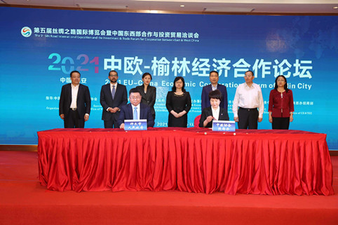▲中欧协会陕西省办事处与神木市签订产业合作协议