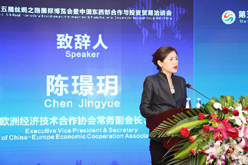 ▲中国欧洲经济技术合作协会常务副会长兼秘书长陈璟玥 致辞