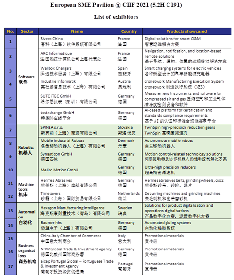 届时我馆将迎来17家欧洲展商参展,他们主要是来自欧洲的中小企业,包括奥地利、丹麦、法国、德国、意大利、荷兰、斯洛伐克、西班牙,葡萄牙和瑞典。这些企业将展示创新科技类产品,如软件,机器人,机床及自动化。他们都期待与中国企业和组织探索新的合作机会。