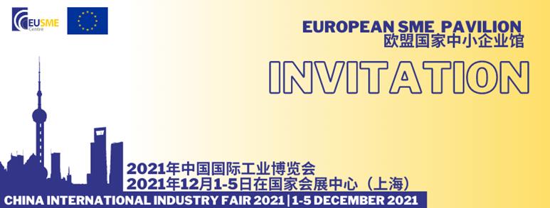 2021年12月1-5日在上海国家会展中心即将举办的下届中国国际工业博览会上,欧盟中小企业中心将组织设立欧盟国家中小企业馆。欧盟国家中小企业馆由欧盟中小企业中心合作伙伴 - 中国意大利商会的大力支持。