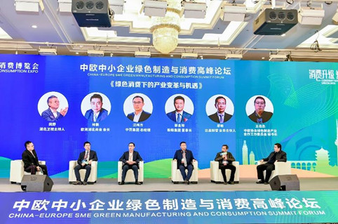 围绕 《绿色消费下的产业变革与机遇》的议题,盼盼食品集团董事长蔡金垵、中百集团总经理汪梅方、达晨财智业务合伙人廖敏、欧洲湖北商会会长林鹏、中欧协会绿色制造产业合作工作委员会秘书长王岳丞分别从不同角度探讨了如何促进绿色消费产业的转型发展。
