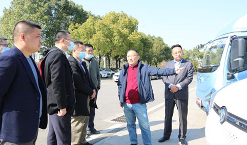 会后东风汽车股份有限公司海外事业部总经理邱晓军邀请中欧协会副会长代军杨等一行人参观东风研发院研发的符合欧六标准的新款新能源商用车。