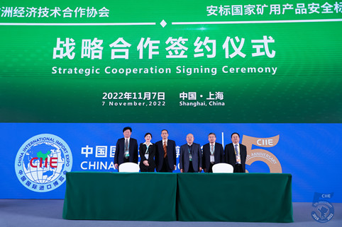 2022年11月7日,中国欧洲经济技术合作协会与安标国家矿用产品安全标志中心在第五届中国国际进口博览会期间我会主办的第五届全球汽车发展趋势论坛上签署了战略合作协议。中国欧洲经济技术合作协会常务副会长兼秘书长陈璟玥;安标国家矿用产品安全标志中心党总支书记、董事长朱凤山代表双方签署协议。南南合作促进会副会长须同凯、中国五矿化工进出口商会副会长刘丹阳、中国机电产品进出口商会副会长石永红、中华人民共和国商务部对外贸易司原副司长程占印共同见证签约仪式。