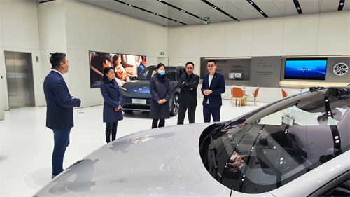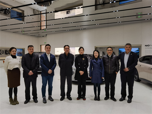 大家首先参观了蔚来中心展厅,了解蔚来最新产品和技术成果。中欧协会智能网联汽车分会秘书长林示组织此次交流座谈会。在交流过程中,蔚来汽车北京区域总经理陈天阳对蔚来汽车发展情况进行了详细的介绍,并表达了参展2023年服贸会的意愿和诉求。