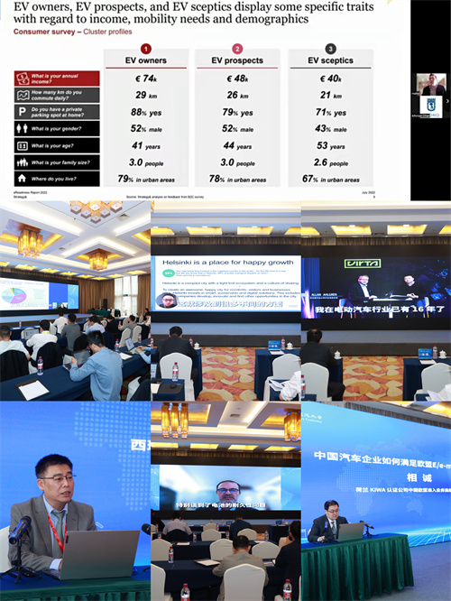 研修班第二天,芬兰赫尔辛基市商务局亚洲区域负责人王鑫,芬兰汽车工业协会道路运输信息中心高级顾问汉娜?卡莱诺亚(Hanna Kalenoja),欧洲规模最大的充电运营平台服务商来自芬兰的威尔达(Virta)公司商务合作主管拉米?诺尔马亚 (Rami Normaja),西班牙汽车维修与销售协会(GANVAM)企业总监杰米?巴瑞亚(Jaime Barea),西班牙电动汽车创新销售专家尤金?马洛尔(Eugenio Mallol Sanchis),西班牙加泰罗尼亚企业发展局北京代表处投资总监金磊,荷兰KIWA认证公司中国欧盟准入业务高级产品经理相诚等7位讲师,从国别角度,通过线上线下相结合的方式与学员分享了芬兰和西班牙新能源汽车市场概况,当地的配套设施建设,相关法律法规等实用信息,让学员们对欧洲市场有了更深刻和具象的了解。