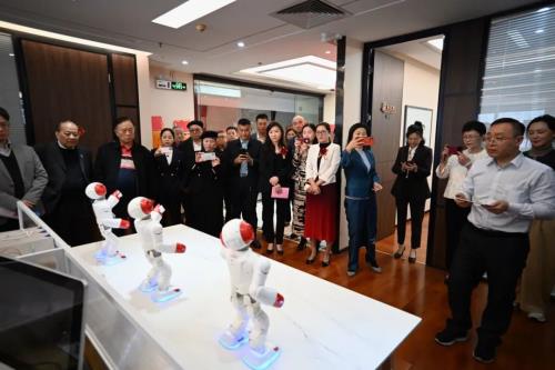揭牌仪式上,与会嘉宾们就中欧金融合作的现状、前景及面临的挑战等问题进行深入的交流和探讨,发表了各自的见解和建议;协会会员企业上海铱童机器人有限公司,在现场展示了类人系列机器人珠穆朗玛团队的献“舞”。