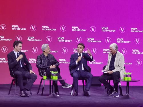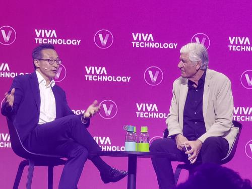 2025法国科技创新展(VivaTech大会)于当地时间6月11日在法国巴黎凡尔赛门会展中心举办,来自空间技术、能源、健康与生物科技、农业与食品、工业4.0、人工智能、机器人、区块链等30个行业领域的众多大型及初创科技企业齐聚一堂,展示其在各自领域的最新成果。中国欧洲经济技术合作协会副秘书长闫志康带领中国企业代表团参加此次活动。法国总统马克龙莅临并与英伟达集团CEO黄仁勋、Mistral AI首席执行官芒士Arthur Mensch对话,阿里巴巴董事会主席蔡崇信,中国驻法国大使邓励等分别出席。