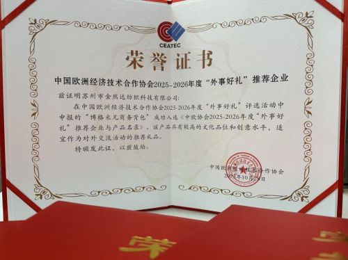 本次征集活动面向全国,旨在广泛发掘能够体现中国特色深厚文化底蕴及时代特征,并符合中欧协会外事活动要求的优质产品。自活动启动之后,共收到来自全国各地数十家企业申报的五十余件产品,品类涵盖工艺美术、文创设计、非遗作品、科技精品等。经协会专家组从文化代表性、创新性、便携性等多角度进行综合考量,来自江苏、湖南、河南等省市的五家企业及其产品成功入选《中欧协会2025-2026年度“外事好礼”推荐企业与产品名录》。它们将成为未来一年中欧协会经贸与文化交往中的“文化名片”。
