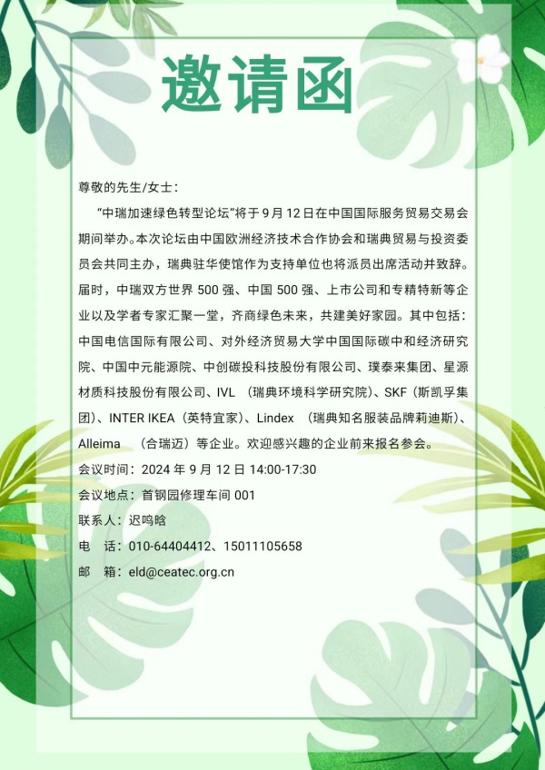 上一篇:关于邀请参加“2025年中欧协会新春交流会暨 2025年中国国际服务贸易交易会专题推介会”的函