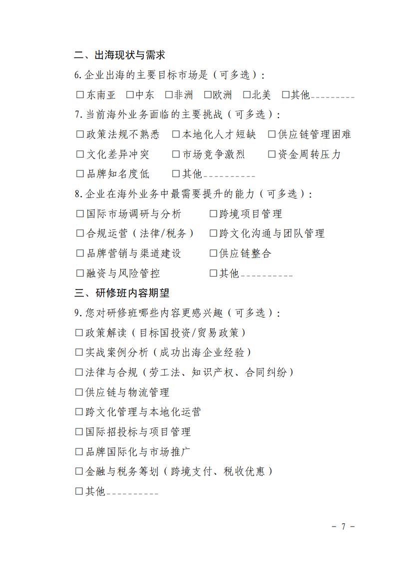 附件:建筑装饰企业出海高级研修班调查问卷