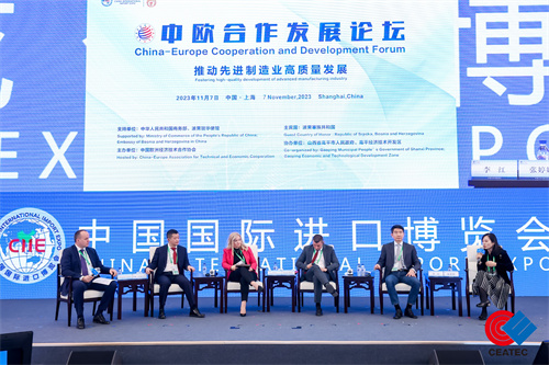 中欧合作发展论坛作为第六届进博会重要的配套活动,以“推动先进制造业高质量发展”为主题,围绕中欧在推动先进制造业高速、高质量发展领域的热点话题进行深入探讨。