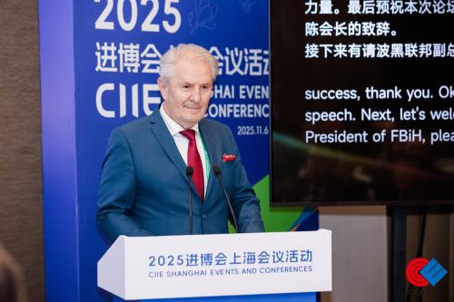 作为进博会上海会议活动边会,论坛汇聚了中国与欧洲的多国政府代表、行业领袖与企业嘉宾,包括中国欧洲经济技术合作协会常务副会长兼秘书长陈璟玥、波黑联邦副总统雷菲克·兰多(Refik Lendo)、匈牙利驻上海总领事馆商务领事戈乐左(Levente G?NCZ?)、波黑外贸商会主席阿赫梅特·埃格里奇(AHMET EGRLIC)、福建省商务厅副厅长林本东、中国-东盟博览会秘书处秘书长王继才、江苏省南通市崇川区市北高新区党工委副书记吴太宾,欧洲企业基伊埃(GEA)工程技术公司区域销售经理杨燕、赫宝嘉(HerbaPlus AS)海外市场总监李中杰、泛亚生物医药股份有限公司副总裁王佳琪女士等嘉宾。围绕智能制造、绿色科技、数字经济、生命健康等关键领域展开深度对话,共同探索中欧合作新路径。