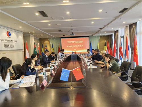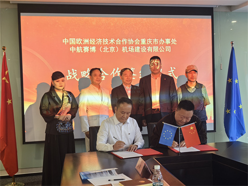 10月24日,中国欧洲经济技术合作协会重庆市办事处与中航赛博(北京)机场建设有限公司在重庆签署战略合作协议。中欧协会重庆市办事主任徐富成、中航赛博(北京)机场建设有限公司市场拓展业务代表兼首都城投副总裁谢鸿儒、重庆市商务委员会二级巡视员杨来科;多米尼克国商务驻华主任、参赞王小敏,经济代表达尔基;重庆大礼堂博物馆书记兼馆长赵昕娜;家禾影视传媒制片人颜繪宸;中国金融服务公司西南代表处首席代表徐奇等出席签约仪式。