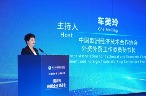 ▲中欧协会外资外贸工作委员会秘书长车美玲主持会议