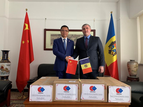 On April 7, a donation ceremony of anti-epidemic supplies organized by CEATEC was held in the embassy of Moldova in China. Mr. Pan Feng, deputy council director of CEATEC, Mr. Denis Jelimalai, Ambassador of Moldova to China and Mr. Miao Yuyuan, Deputy Director of the Beijing Office of Chengdu Municipal People's Government attended the ceremony. The total value of these supplies was worth around 500 thousand RMB, including protective suits, gloves, face masks, etc.